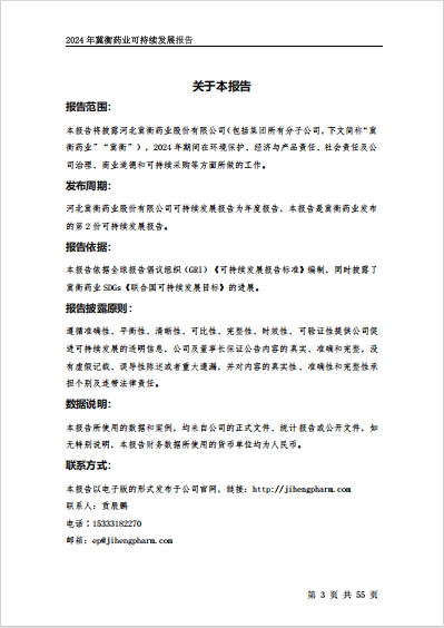 河北冀衡药业股份有限公司2024 年可持续发展报告